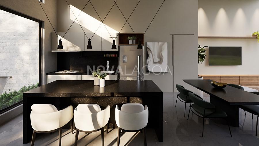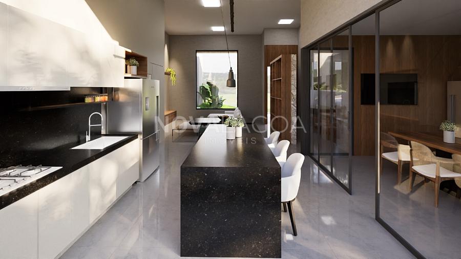 • Cozinha moderna integrada com espaço gourmet e sala ampla